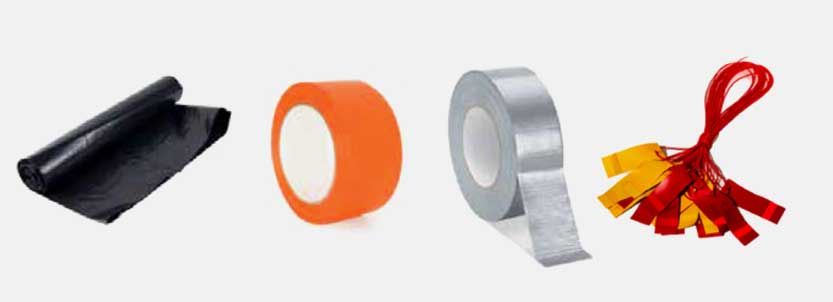 Toimitamme remonttisuojat, jätesäkit, purkupussit, voima-arkit, kennolevyt, suojamuovit, varoitusnauhat, teipit, lippusiimat ja sulkupylväät.